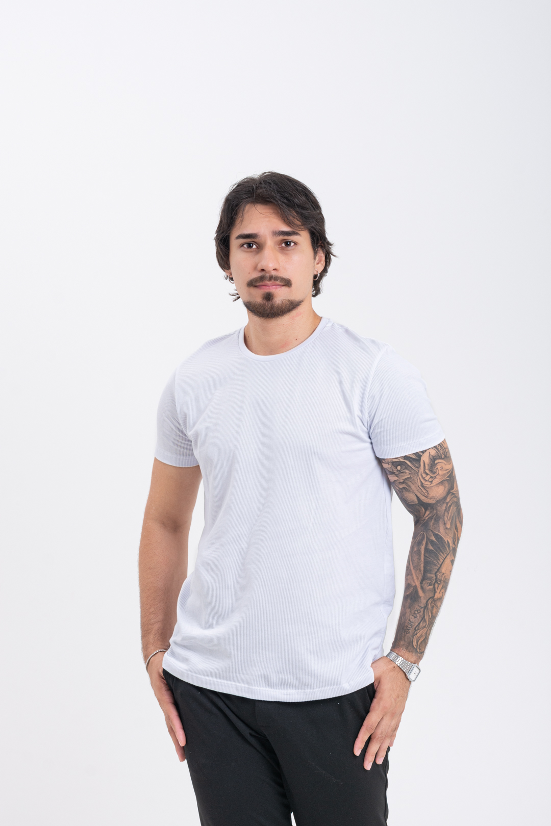 🧵 Algodão Premium e Acabamento Impecável: Diferente de modelos sintéticos, esta peça é confeccionada em 100% Algodão, garantindo máxima respirabilidade para a pele, frescor e um toque macio inigualável. Sua modelagem Slim Fit proporciona um ajuste moderno que valoriza a silhueta. Para coroar o design, a camiseta conta com pequenas aberturas laterais na barra, finalizadas com uma sofisticada etiqueta em couro da Pataloo, entregando um caimento perfeito e exclusivo.
