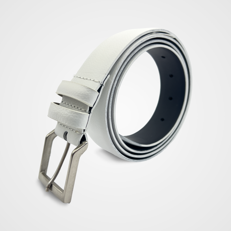 O Cinto Social Pataloo Branco é uma peça de destaque. Produzido em Couro 100% Legítimo, ele oferece a qualidade que falta nos cintos brancos comuns do mercado. Com 30mm (3,0 cm) de largura, é discreto e elegante.