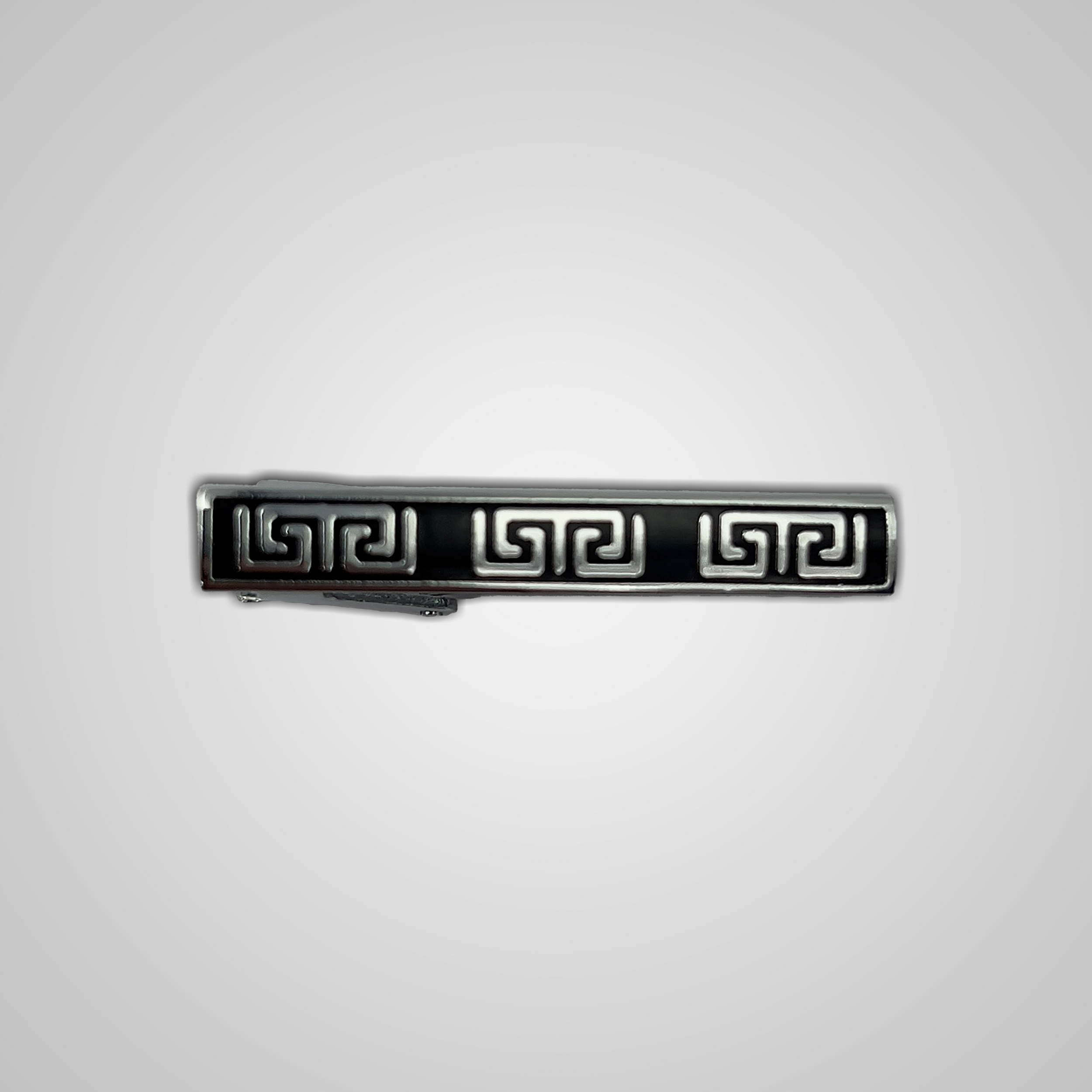 O Prendedor de Gravata Pataloo Aztec é a escolha perfeita para quem busca fugir do óbvio com sofisticação. Seu design apresenta um padrão geométrico inspirado na arte asteca, esculpido em relevo prateado sobre um fundo preto intenso. Este contraste cria um visual moderno e artístico, ideal para dar personalidade a ternos lisos ou gravatas sóbrias.