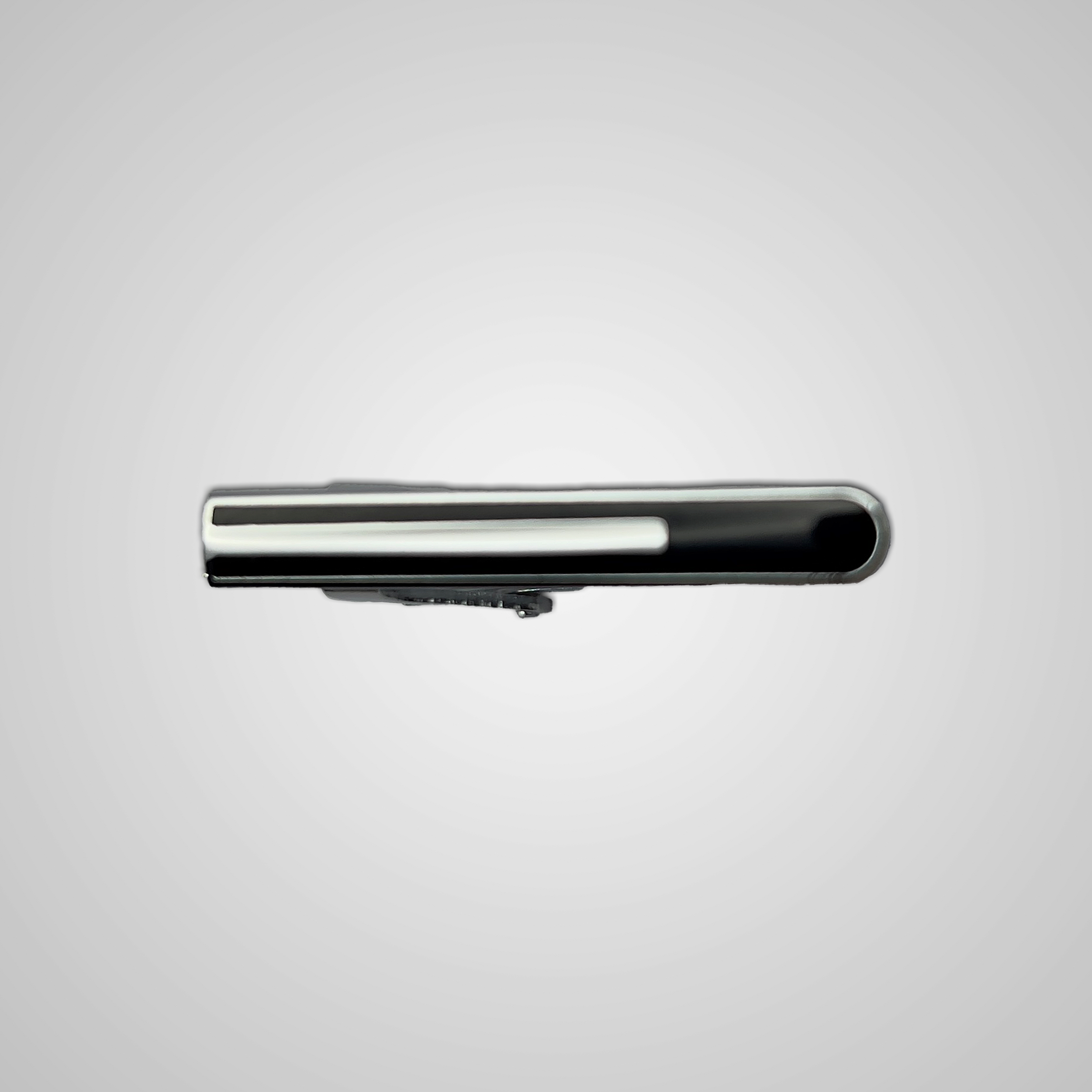 O Prendedor de Gravata Pataloo Midline é uma peça que inspira organização. Seu design inteligente apresenta um fundo preto retangular cortado exatamente ao meio por uma linha prateada em relevo. Esse jogo visual de "linha sobre linha" cria um aspecto arquitetônico e moderno, perfeito para compor o visual de executivos, engenheiros e homens que valorizam a simetria.