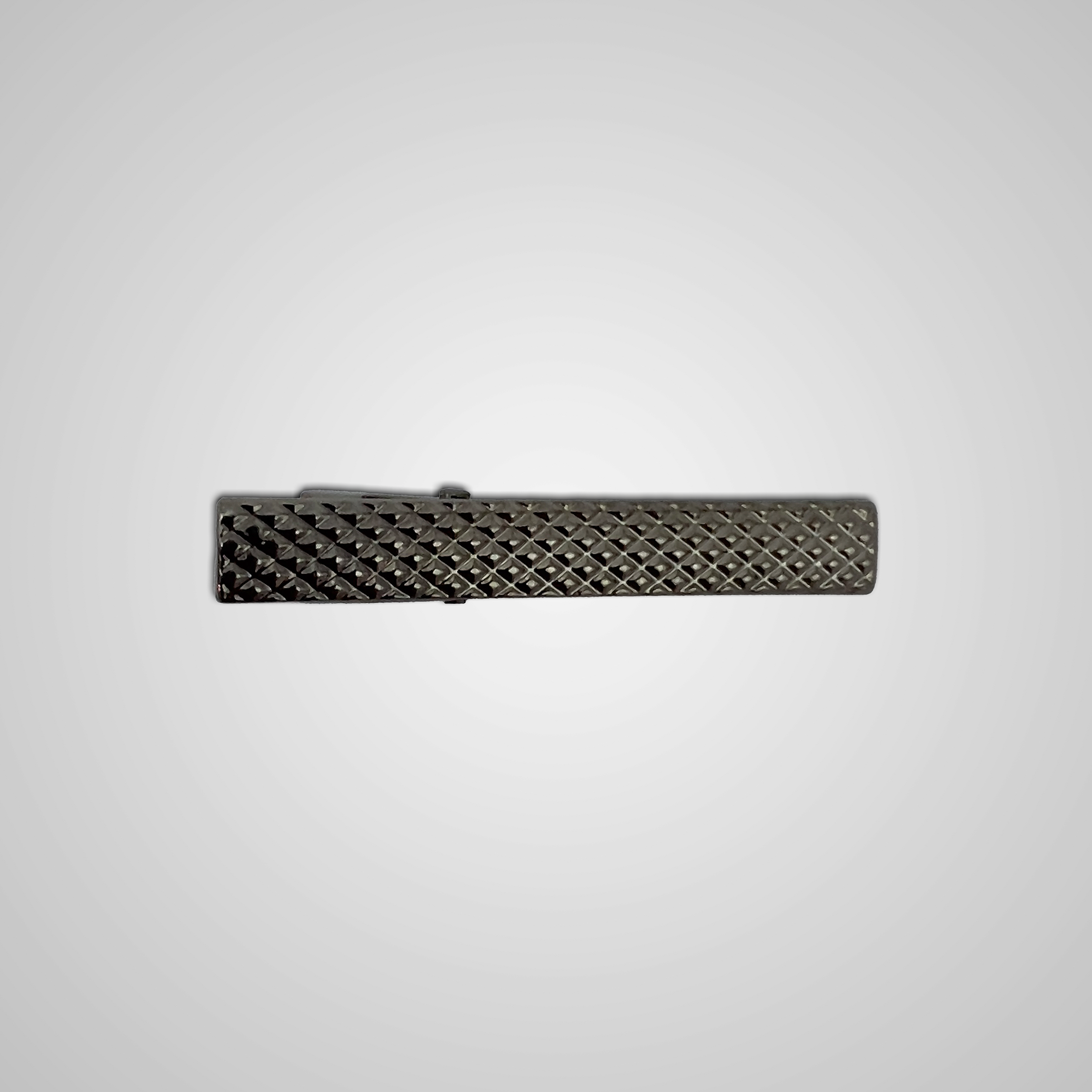 O Prendedor de Gravata Pataloo Perene foi esculpido para transmitir solidez. Seu diferencial é a textura em relevo profundo (estilo "Diamond Cut" ou recartilhado), que cobre toda a superfície da peça. Diferente dos modelos lisos que apenas refletem a luz, o modelo Perene a fragmenta em milhares de pontos de brilho, criando um visual robusto, industrial e extremamente masculino.