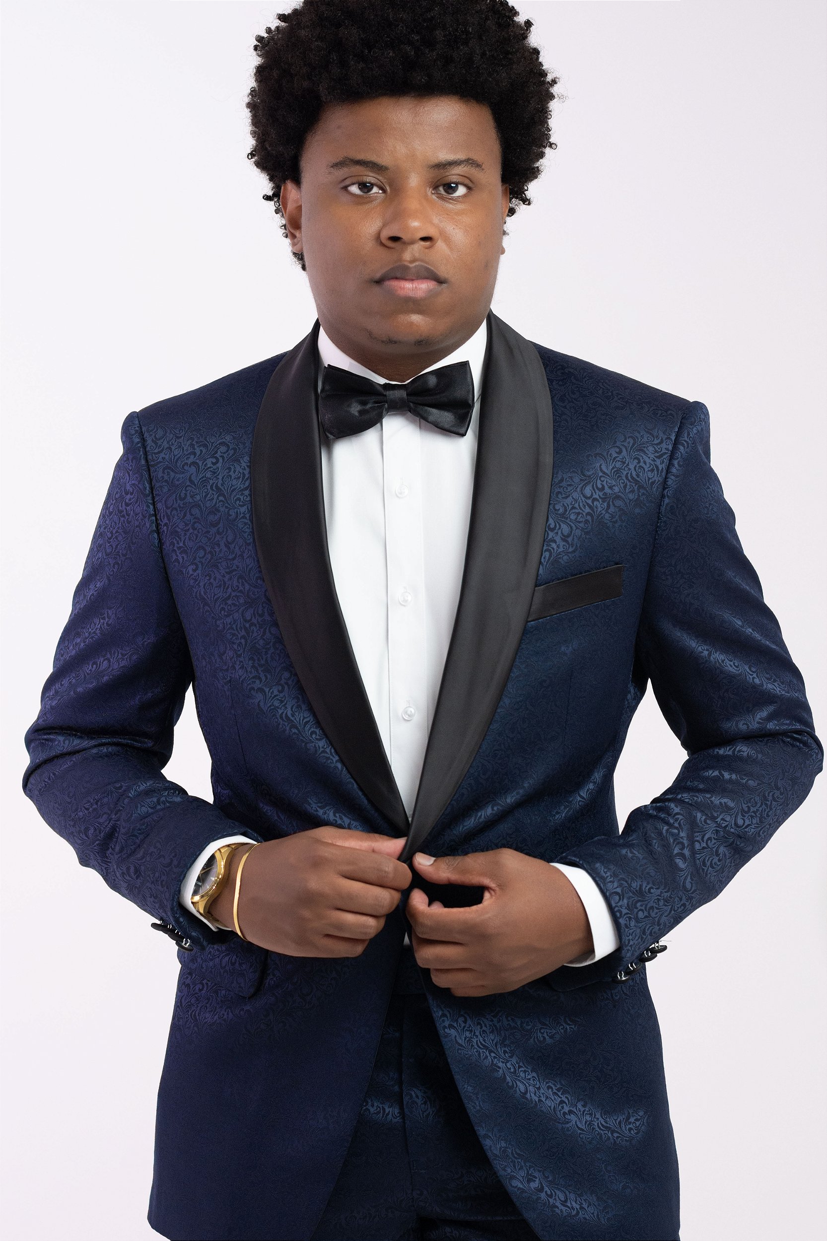 Elegância elevada ao máximo com textura, presença e exclusividade. Garanta agora seu Smoking Pataloo Azul Marinho Jacquard.
